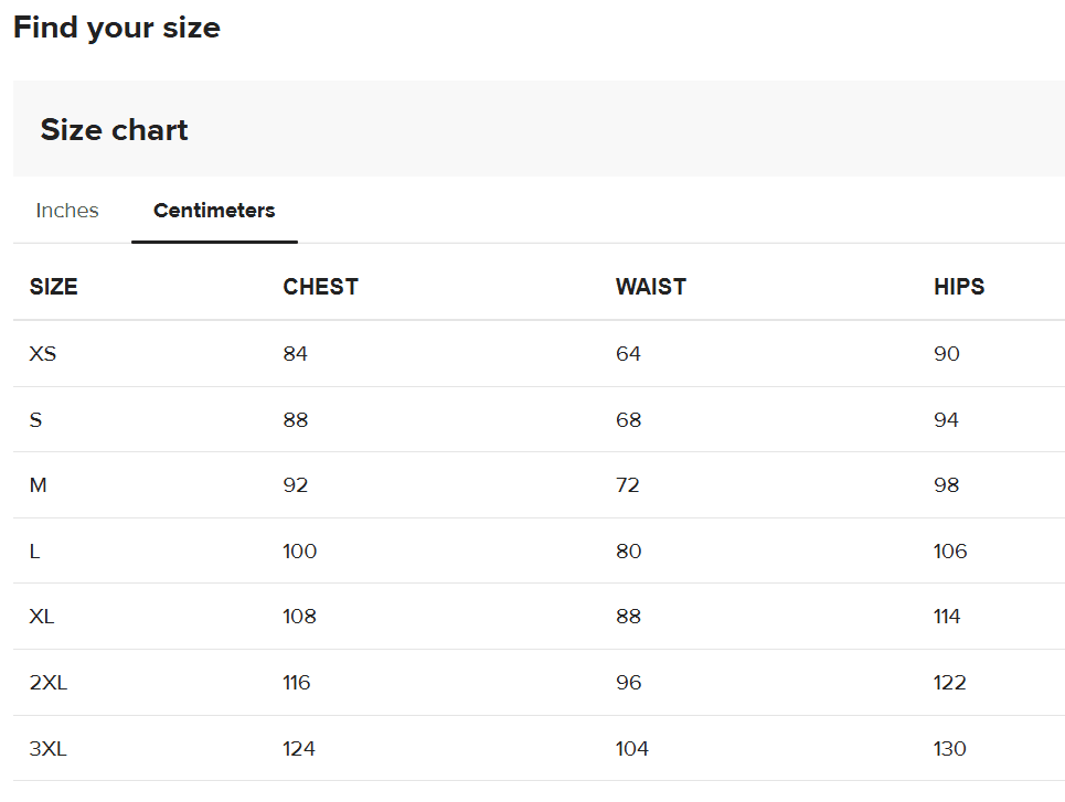 Adult sizing