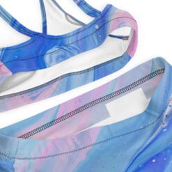 Fall in love with this dreamy blue & pink galaxy swirl bikini set! Made from recycled materials, double-layered for comfort, and designed with supportive, flattering fit. Perfect for beach trips, vacations & pool days. #EcoSwimwear #BikiniStyle #BeachVibes